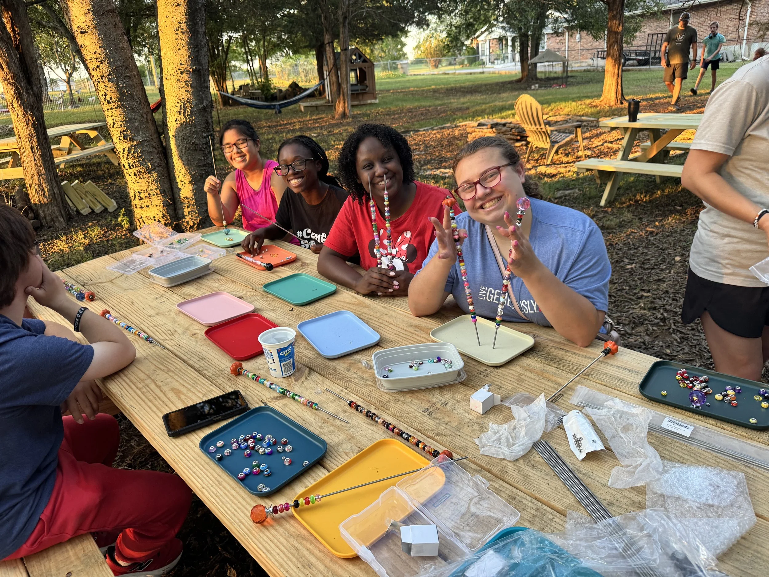 So far this year, we’ve made plant and garden stakes, painted with sticks, sponges, and brushes, and even designed our own bracelets. Each Crafts on the Farm gathering is unique and designed to bring families together — siblings, friends, and loved ones alike.